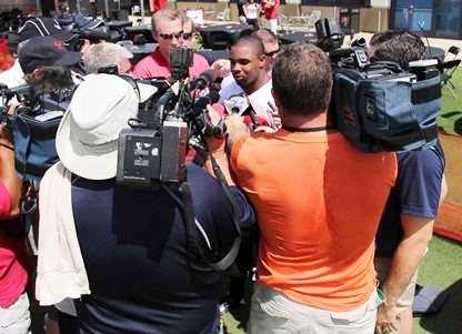Bucs co-chairman Bryan Glazer chats with fans Friday.