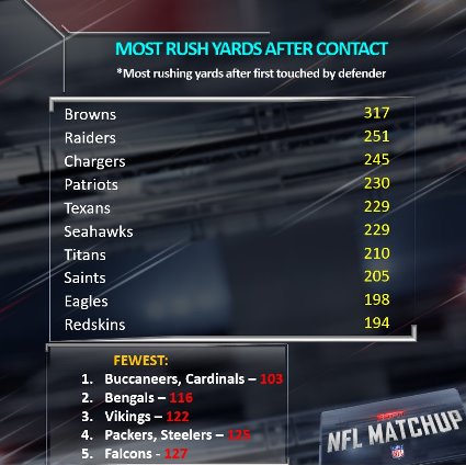 Per the good people of NFL Films, by way of BSPN NFL Matchup, the Bucs are tied with the Cardinals for the worst yards after contact on running plays.