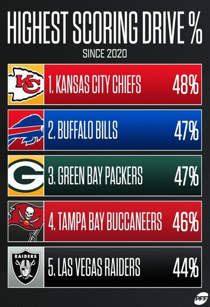 How good has the offense been the past two seasons? Well, consider that only three teams have scored on a higher percentage of their offensive drives than the Bucs. That’s per the PFF Tribe, as you can see below.