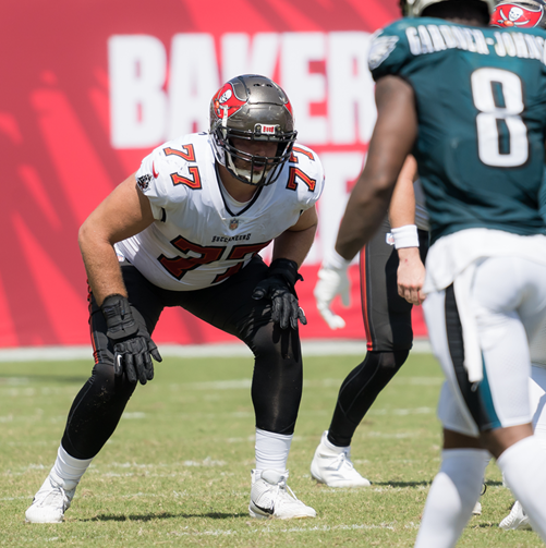 The Bucs’ right tackle, playing in place of starting right tackle Luke Goedeke, was terrible in his first start for the Bucs at Detroit.