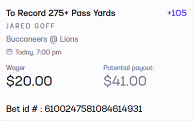 For tonight’s Bucs game in Detroit, Joe has a few selections: