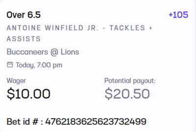 *Antoine Winfield Jr. was around the ball more last week with a season high 9 combined tackles. The showed Joe that the Bucs used Winfield slightly differently. Joe thinks that continues tonight, combined with lots of work for the Bucs secondary (see Goff wager above.)