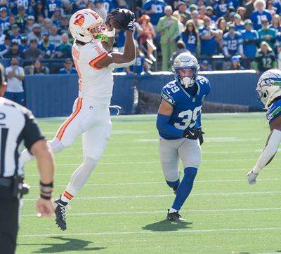 And he’s getting progressively better. Today, his hometown crowd and the challenging Seattle sun was no issue. Egbuka got open and tore apart the Seahawks.