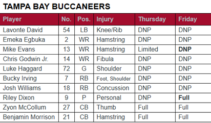 Little Change To Bucs Injury Report; Mike Evans Gets A Day Off
