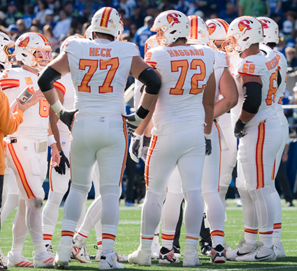 What’s got Joe all jacked up is the Bucs are humming on offense with journeyman Charlie Heck at right tackle, who offensive line analysts treated as a punching bag all offseason, and Luke Haggard at right guard.