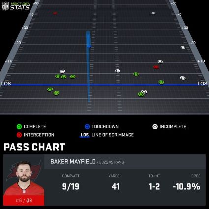 November 26th, 2025Bucs quarterback Baker Mayfield only played on half of football against the Rams last Sunday in that atrocious game from the City of Angels. But in that first half, Liam Coen’s name was all over Mayfield’s passing chart.