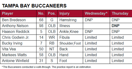 November 13th, 2025The Thursday Bucs-Bills injury report is in.