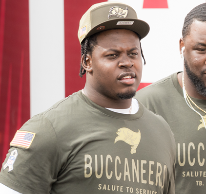 Joe was more intrigued to see defensive tackle Calijah Kancey on the sidelines today as he was in New Orleans. No sling was seen on Kancey’s body (photo below). He tore his pectoral muscle in September and potentially could be ready to play in January.