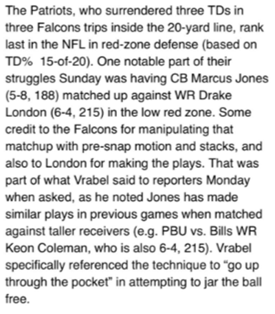 Yeah, yeah, yeah, Mike Vrabel teams are always tough guys (yawn); this year’s Patriots are struggling with red zone defense in a big way.