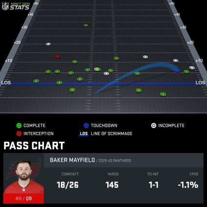 Mayfield had two — two! — completions farther than 10 yards past the line of scrimmage. Hell, even Bucs coach Todd Bowles remarked how the Bucs had to throw the ball downfield more.