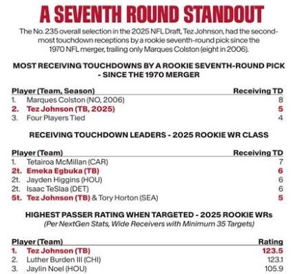 January 26th, 2026If Bucs receiver Tez Johnson has a career anywhere close to the following example, he will become of the great steals of the era run by Bucs AC/DC-loving general manager Jason Licht.