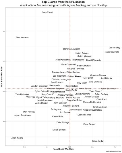 By way of NextGen Stats, when the Bucs had to rely on Buffalo castoff Dan Feeney and (not that) Michael Jordan, the Bucs were starting two of the worst guards in the game.